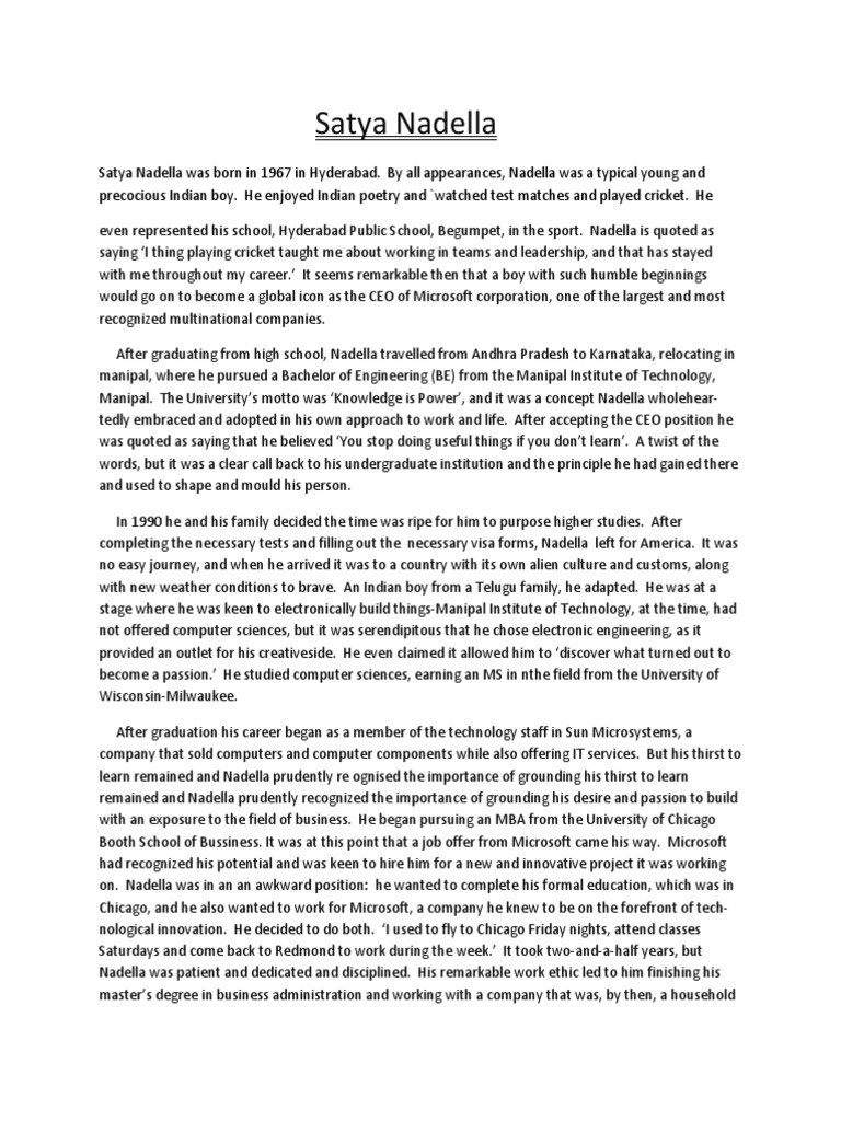 Satya Nadella Cv / Akshay Nambi : Think about every job you get as the most important job. —satya nadella, ceo of microsoftin 2014.. Longtime microsoft executive satya nadella was named ceo, succeeding steve ballmer to become only nadella ushered the company into a new era of openness and innovation, growing microsoft's. In satya nadella's representation and management work are managed by his own management team. Satya nadella began his prolific career at microsoft in 1992. Satya nadella is the current ceo of microsoft. This biography provides detailed information about his childhood, profile, career, net worth & timeline.